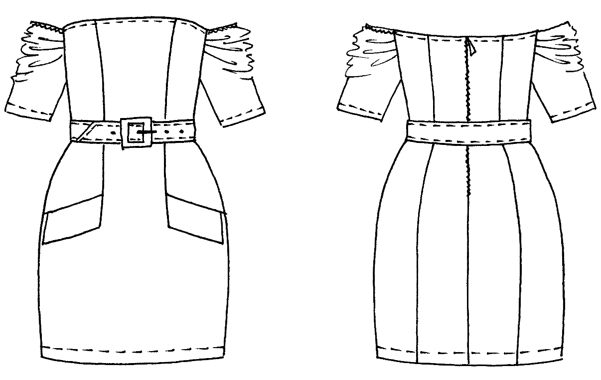 Детали из клеевой: 1. Обтачка спинки 2дет. 2. Обтачка переда 1дет. 3. Клапан 2дет. 4. Пояс 1дет. 5. Усилитель под молнию 2дет. (35см*1.5см Н.О. вдоль) |