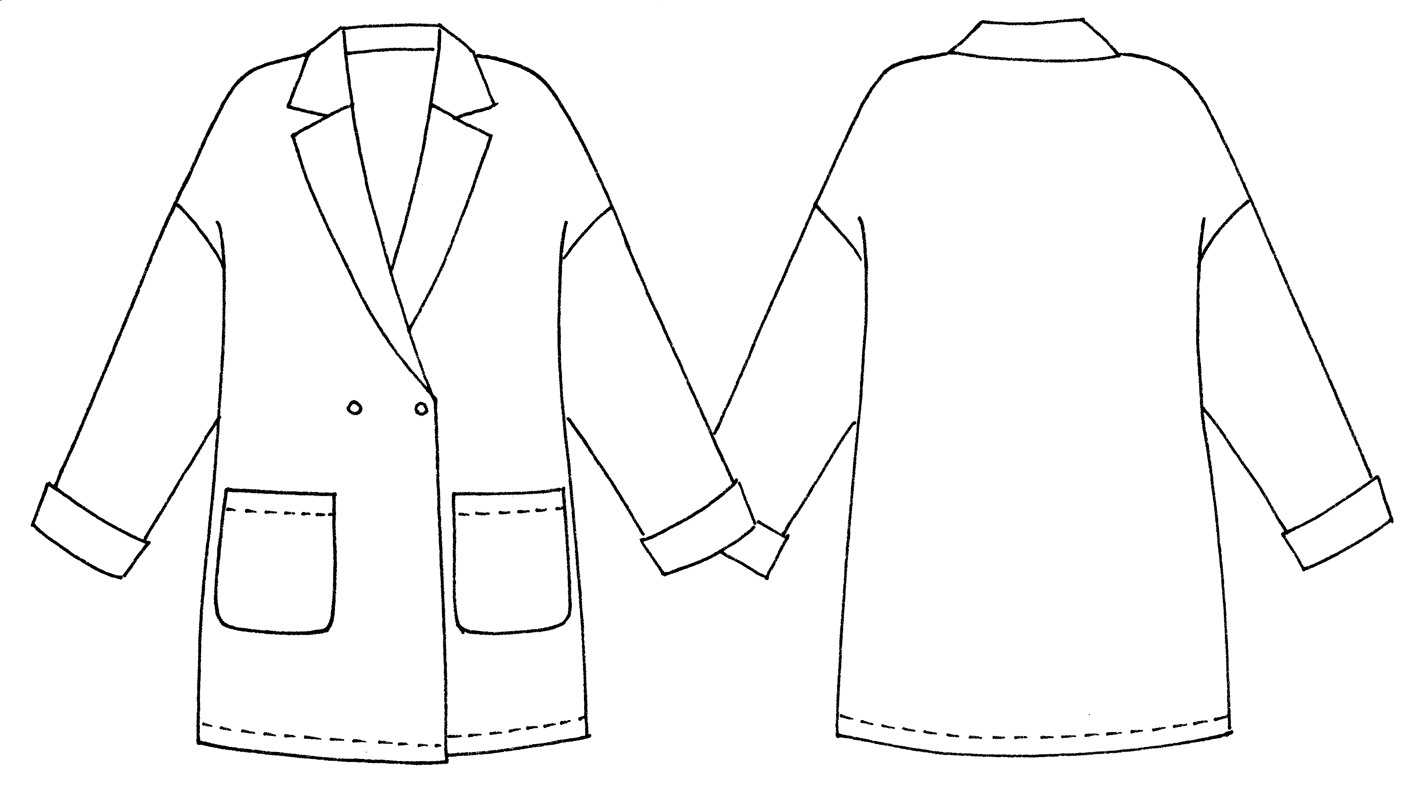 Детали из основой ткани: 1. Спинка 1дет. 2. Обтачка горловины спинки 1дет. 3. Перед 2дет. 4. Подборт 2дет. 5. Карман 2дет. 6. Верхний воротник 1дет. 7. Нижний воротник 1дет. 8. Рукав 2дет. |